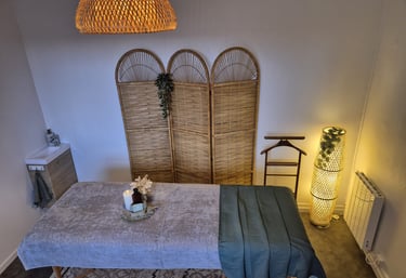 Situé à Lezennes, le cabinet de massage est un espace conçu pour votre bien-être, alliant calme et sérénité. Avec une ambiance douce, une décoration apaisante et un cadre confortable, tout est pensé pour vous offrir une parenthèse de détente. Ici, chaque détail contribue à créer une atmosphère propice au lâcher-prise et à la relaxation.